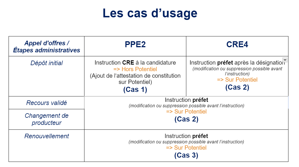 * Lors d'une **désignation comme lauréat** pour les appels d'offres **CRE4**